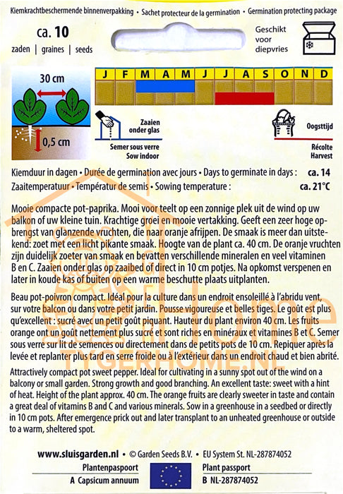 Tangerine Dream Paprika Pot Zaden: Grow Sweet, Vibrant Orange Bell Peppers in Your Pots or Garden - Kweek Heerlijke, Knapperige Oranje Paprika's in Potten of Je Tuin
